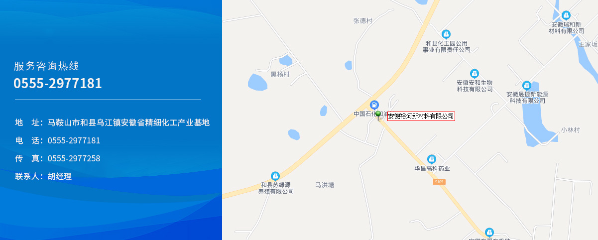 地址:安徽省馬鞍山市和縣烏江鎮安徽省精細化工產業(yè)基地 電話:0555-2977181 手機:187-0551-7353/胡經理